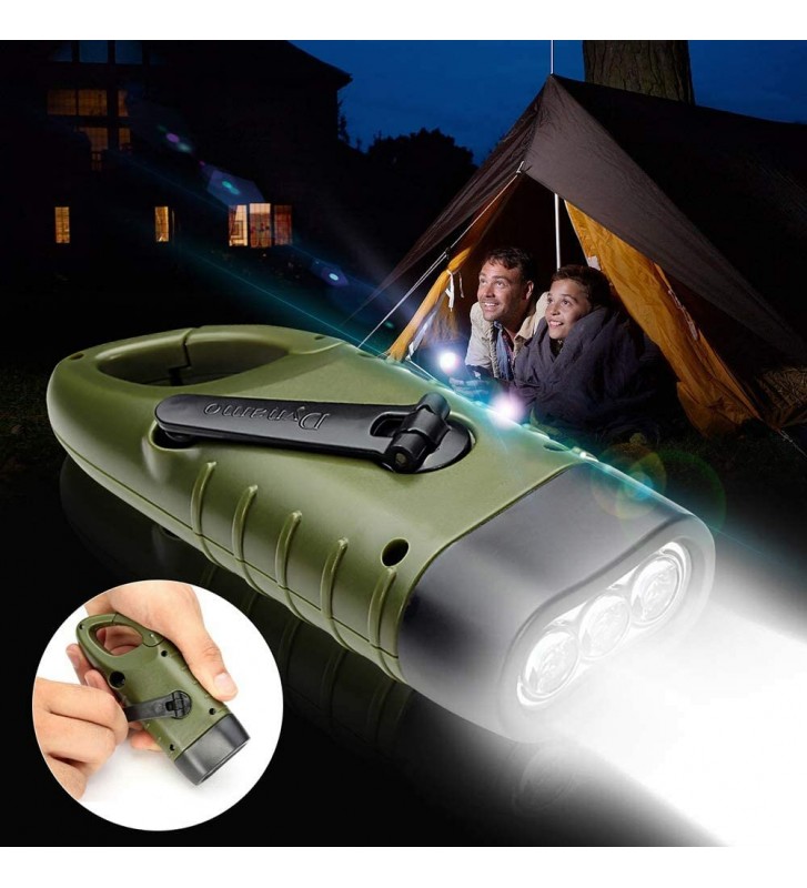 2 PCS Portable LED Flashlight Hand Crank Dynamo Torch Professional Solar Power Tent Light Lantern for Outdoor Camping Mountainee