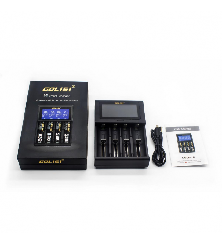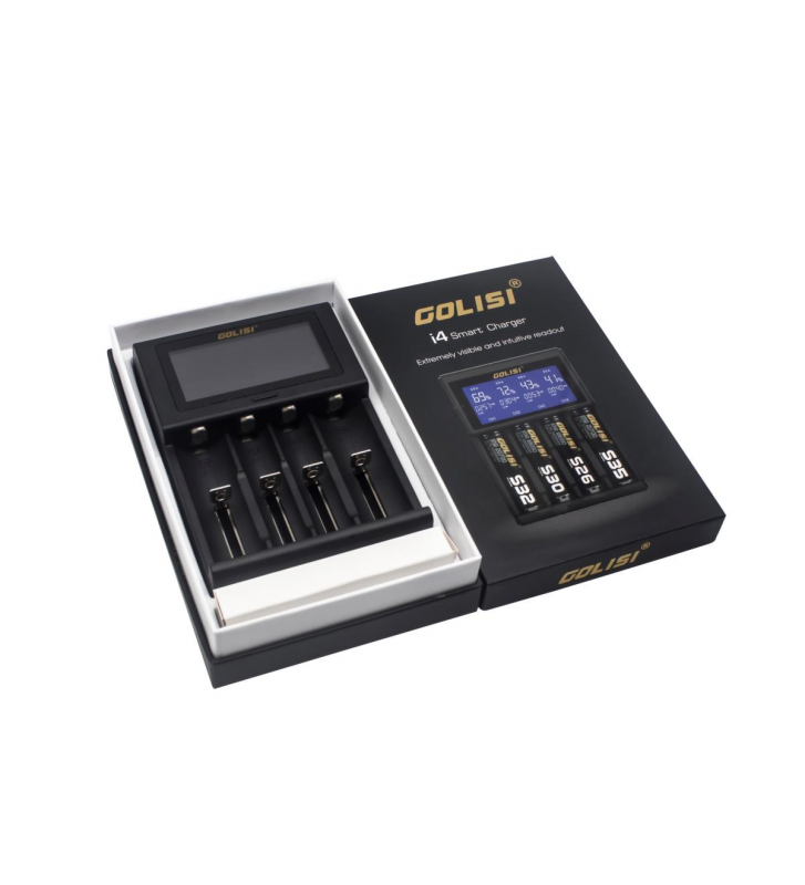 GOLISI i4 is the upgraded version of our star charger S4, it not only inherits the readout friendly on a large HD LCD screen and durable loading springs, i4 adopts USB power port to charge cylindrical rechargeable batteries of length ranging 32-70mm. i4 has 2 core components: a high efficiency Switching-Mode-Power-Supply and a microprocessor. the two parts convert high electricity voltage into suitable voltage for battery charging. The electro-circuit uses 4 independent output charging modes with which it can charge Lithium-ion batteries, Ni-mh batteries, and Ni-cd batteries in any model and capacity. The current is constant mode and current can be distributed automatically to 4 channels.