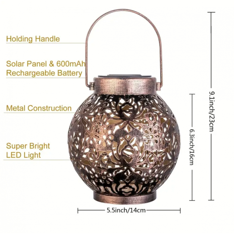 Material: Metal (retro hollow casing) + plastic + solar panel