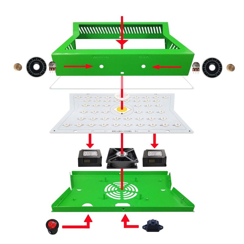 Adjustable wavelength: The lamp uses a knob to control the wavelength of the light, and the 0%-100% knob controls red, blue light and brightness. COB plant growth lamp make plants absorb the most suitable light waves at different stages of growth.