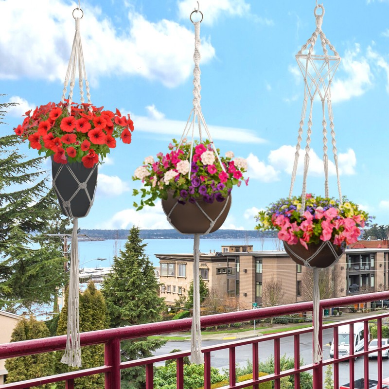 ❀Beautiful Design❀Plant Hanger is 41 inches , using 100% pure cotton thread, with solid woven flexible design, the plant hanger can maintain the flexible and soundness at the same time.Kink design and tassel design skills are tedious but not confusing, perfectly blending modern style with bohemian style.This hanger plant is suitable for flower pots with a diameter not exceeding 10 inches.