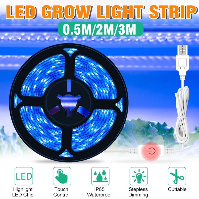 0.5/2/3M IP65 Waterproof LED Grow Light Strip Plant Growing Lamp Touch Control Ice Blue Light - 0.5M No