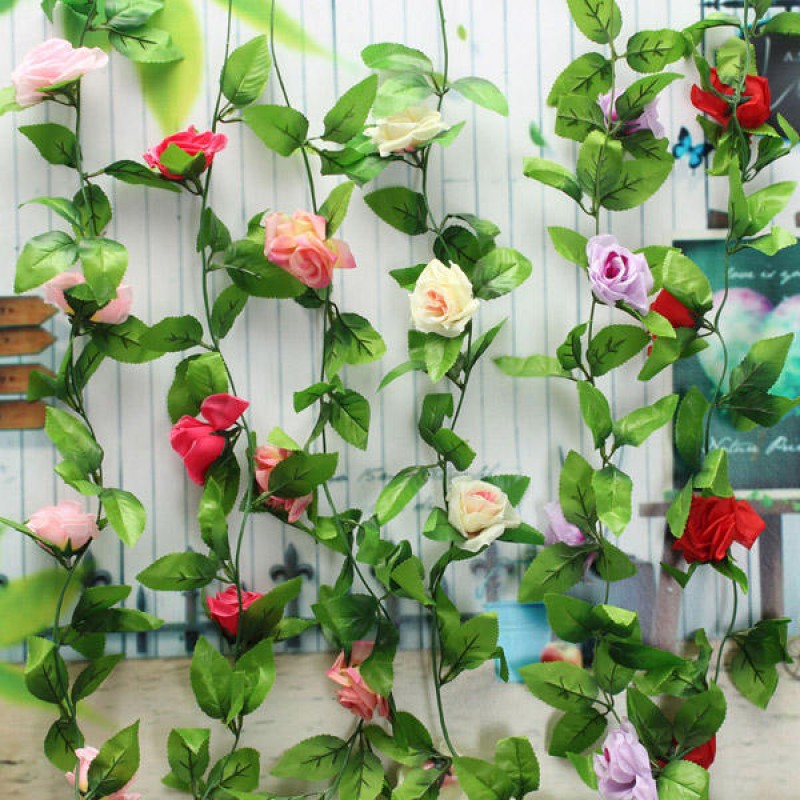 2pcs Artificial Rose Flower Vines Garland Garden Decoration