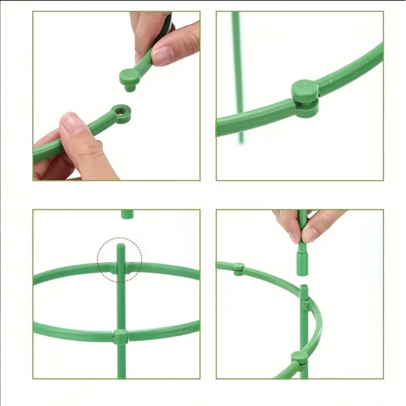 Modular stackable design allows you to adjust the height by adding or removing rings, adapting to different plant growth stages. Half round ring structure provides gentle support for stems and vines, guiding them to climb upwards without restricting growth. Lightweight yet sturdy plastic material is durable, rustproof, and safe for indoor and outdoor use. Easy to assemble and disassemble, with a simple snap fit connection that requires no tools. Suitable for a wide range of small plants including potted flowers, herbs, tomatoes, peppers, and climbing vines.