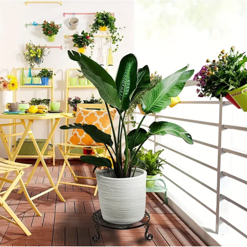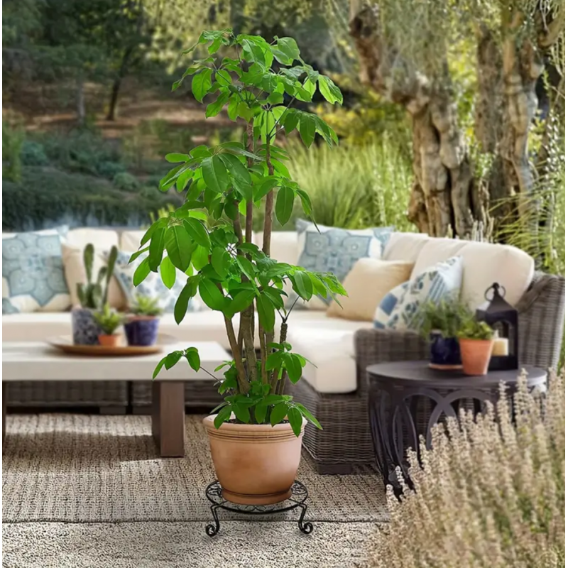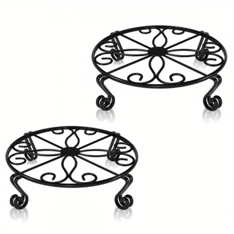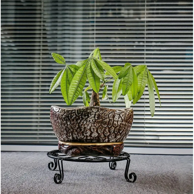 Sturdy rustproof iron construction ensures long lasting durability even in outdoor weather conditions. Vintage pumpkin shaped round design with elegant scrollwork details complements any home or garden decor style. Stable curved leg design provides excellent balance and support for heavy planters, preventing tipping. Lightweight yet strong structure allows for easy moving and placement. Suitable for both indoor use in living rooms, balconies, and outdoor use in patios, gardens, or entryways.