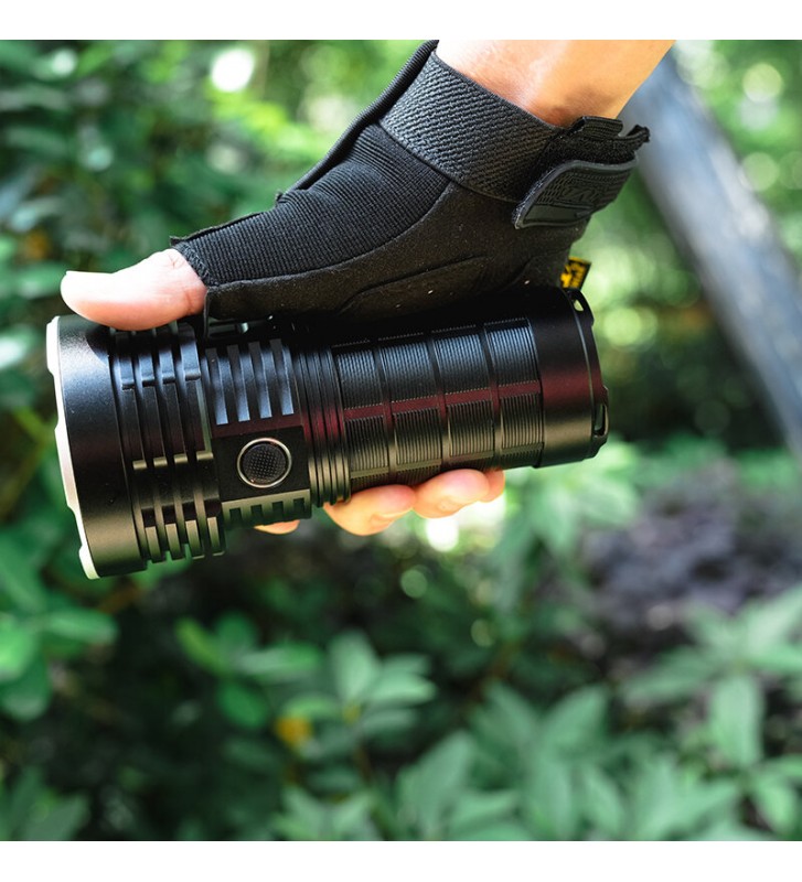 Double-click quickly in any mode to enter turbo. And when the temperature of the flashlight reaches 55°C, there will be a temperature control protection function, the brightness will slowly drop to 4500 lumens, and continue to be on for a long time (about 75 minutes). Then when the temperature of the torch is lower than 48 ℃, brightness will rise again.