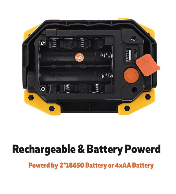 4. Rechargeable light, also can be powerd by 2*18650 battery or 4xAA Battery(Not included).
