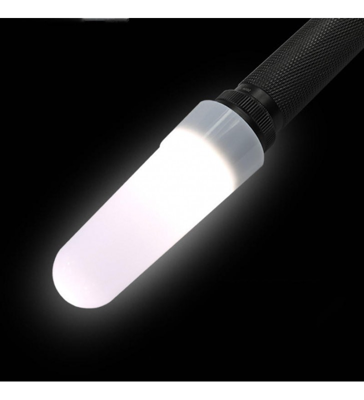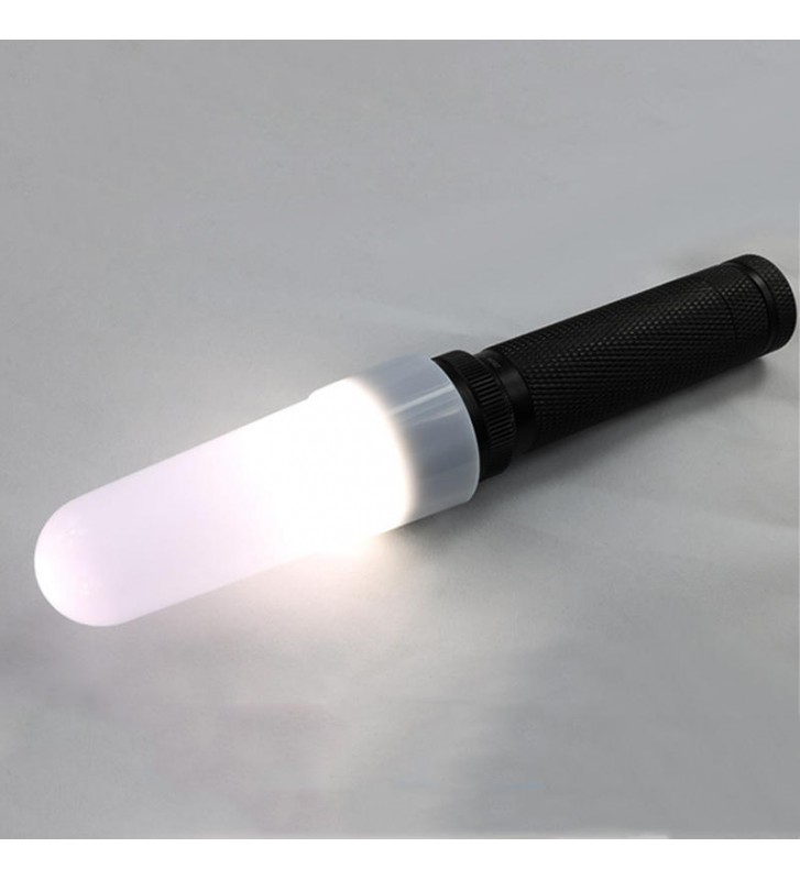 Converts flashlight output into a soft, white and diffused flood beam.